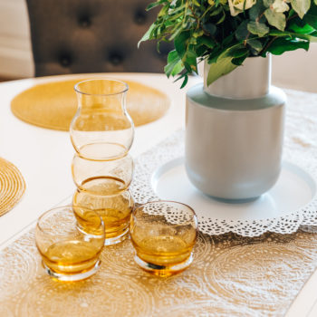Sklenice jsou z ručně foukaného skla, vyrobené v tradiční české sklárně v Novém Boru.